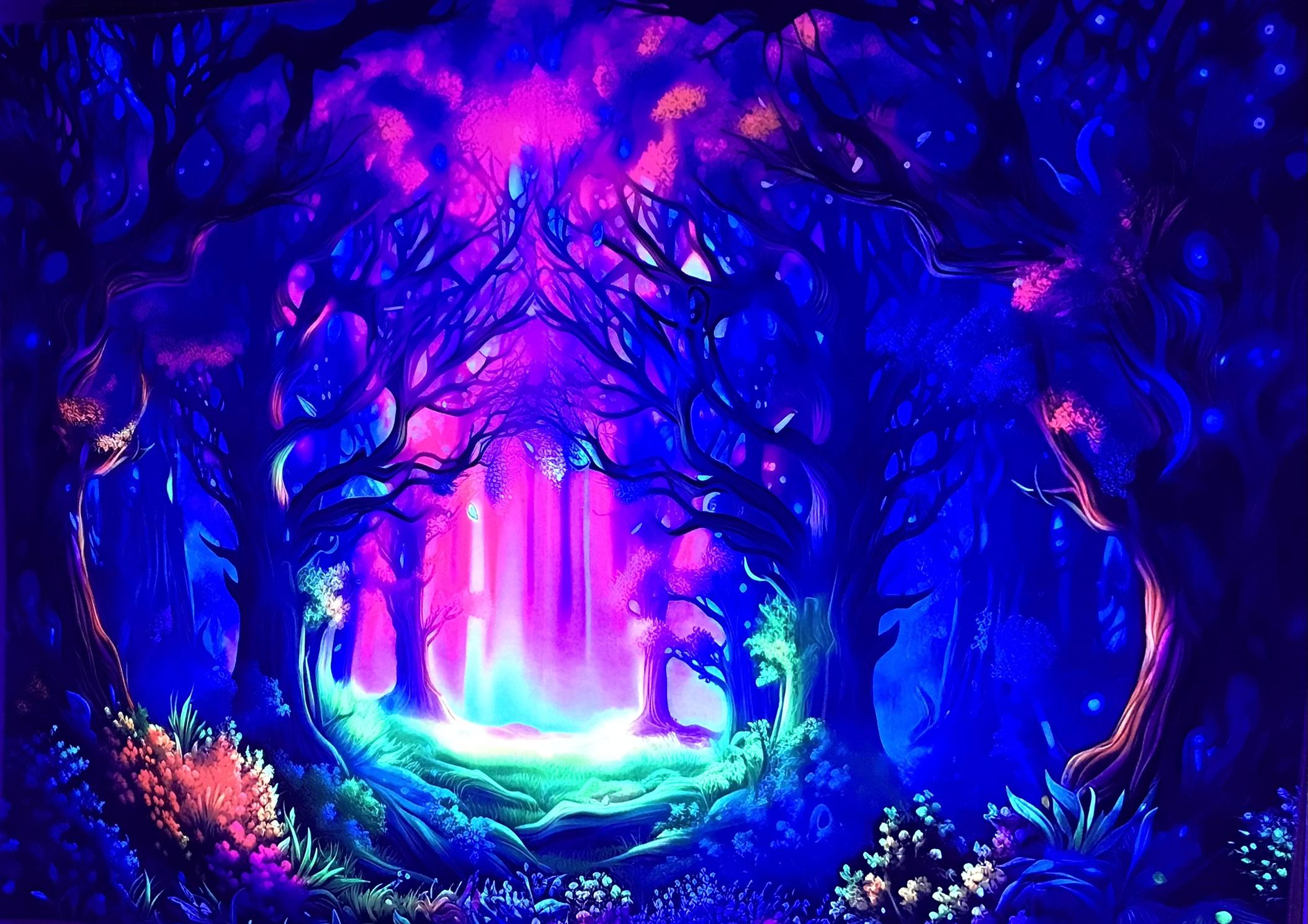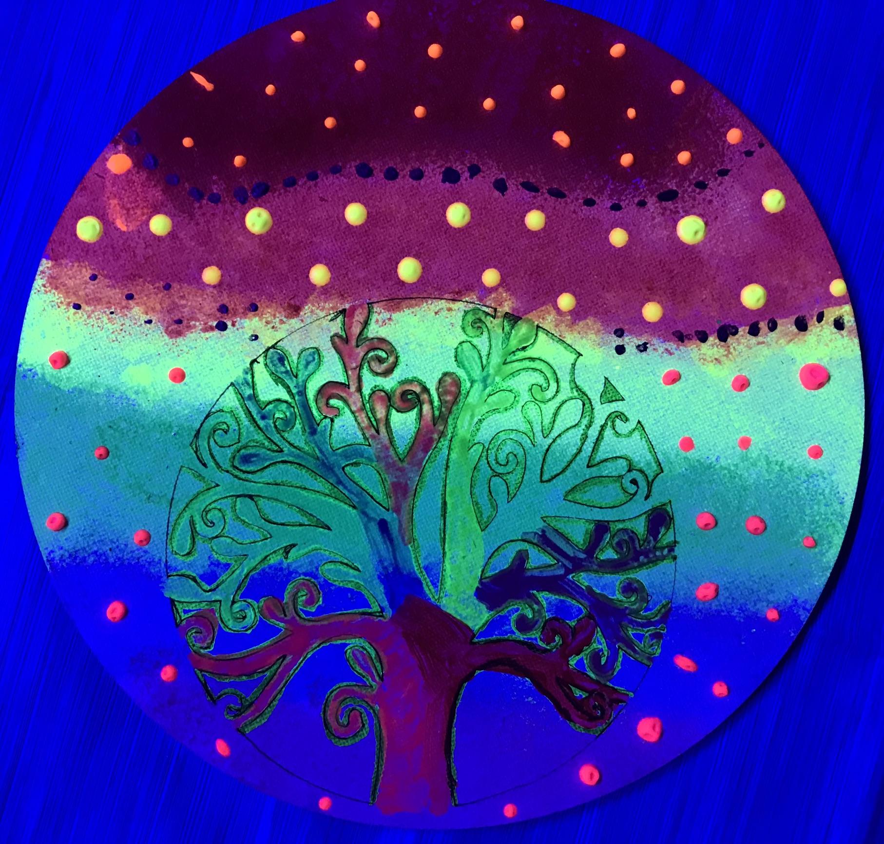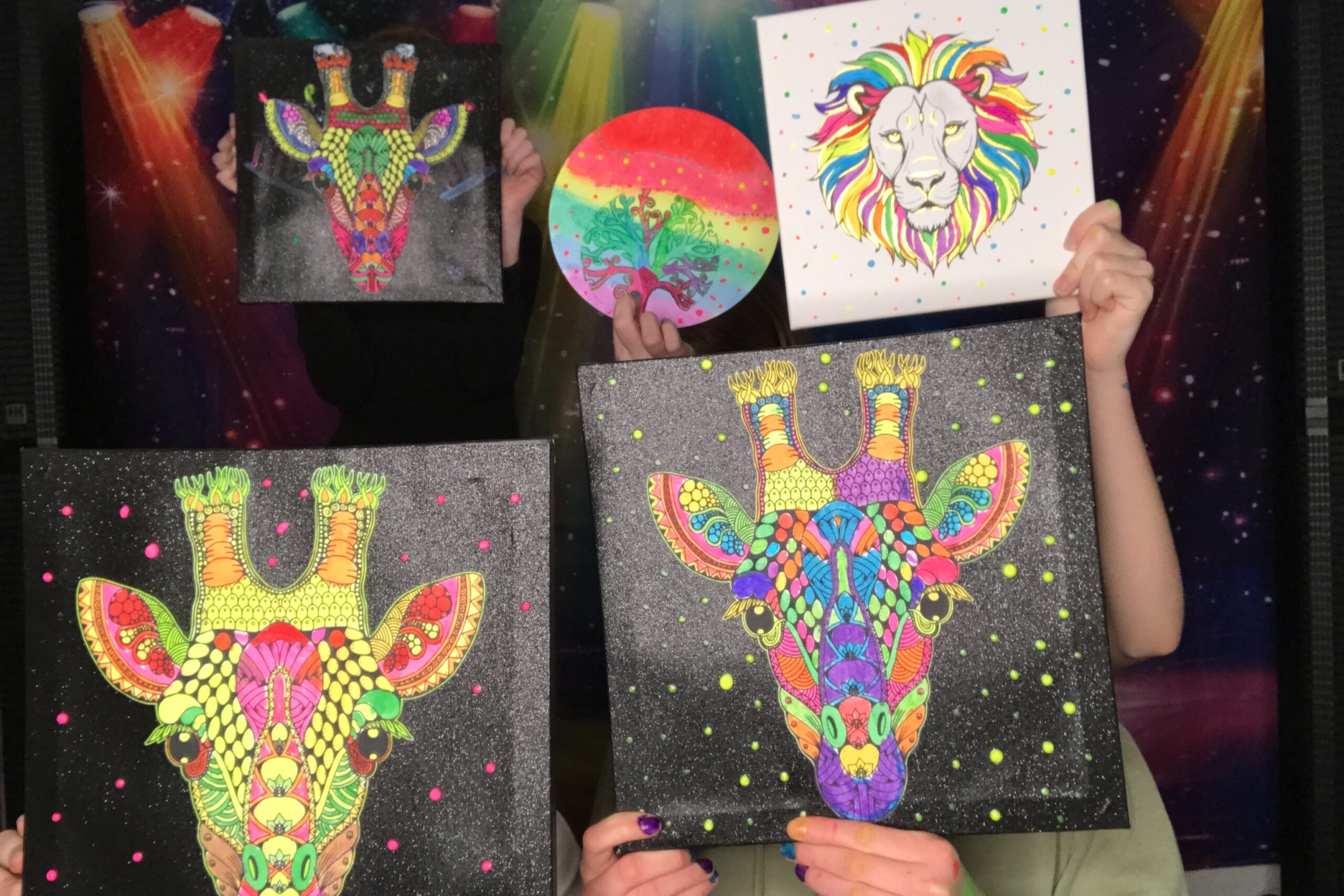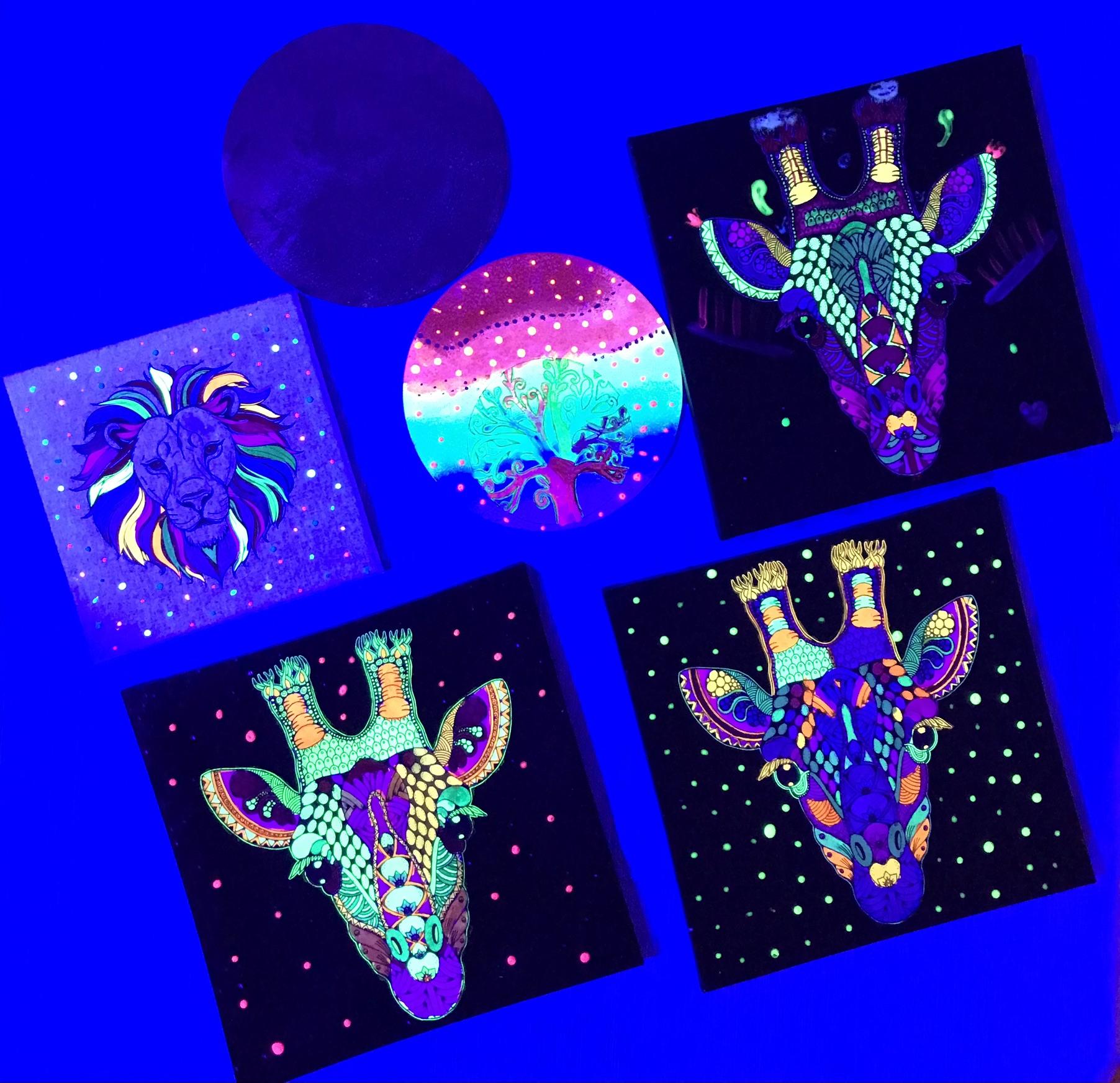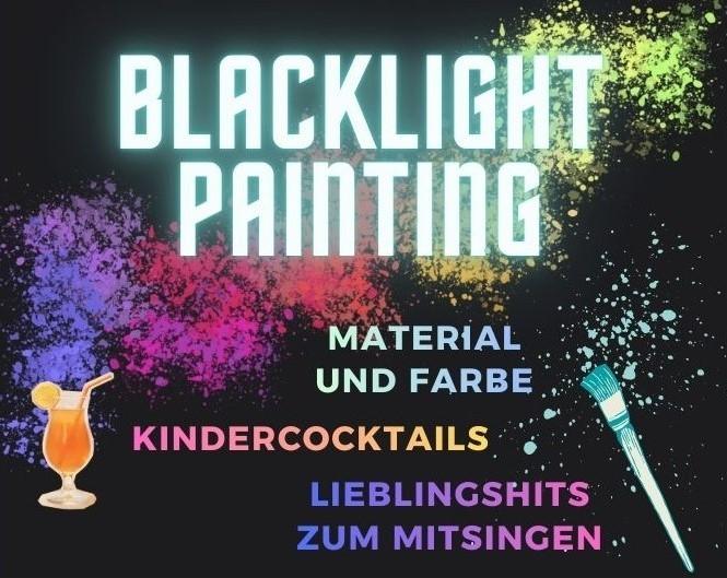 Wir malen mit fluoreszierenden Farben in einem dunklen Raum der mit Schwarzlicht ausgeleuchtet wird. UV-Wandbilder sorgen für ein leuchtendes Ambiente. Mit Pinsel und Stiften in der Hand pfeift oder singt ihr zu euren Lieblingshits und lasst eurer Kreativität freien Lauf. Jeder gestaltet sein eigenes Kunstwerk das er anschließend mit nach Hause nehmen darf.